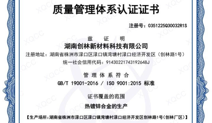 質(zhì)量管理體系認(rèn)證證書